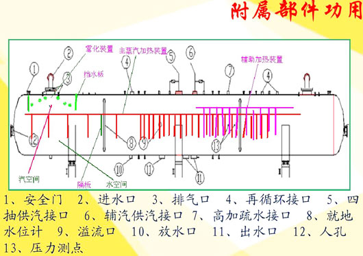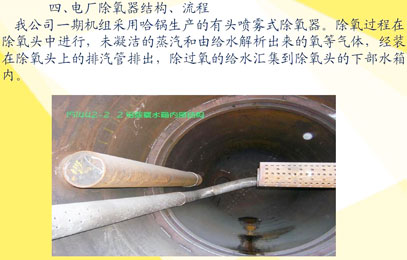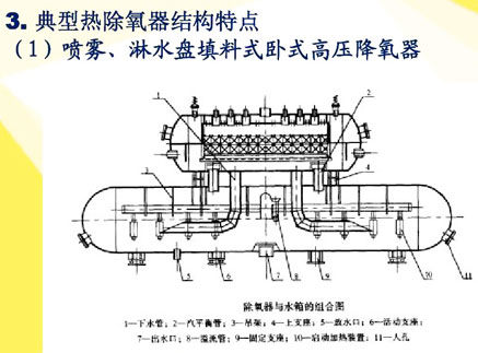典型熱力除氧器結構特點:噴霧、淋水盤填料式臥式高壓無頭除氧器 蒸汽噴射式、臥式高壓除氧器無頭除氧器的除氧器 電廠除氧器結構、流程我公司一期機組采用哈鍋生產的有頭噴霧式除氧器。除氧過程在除氧頭中進行,未凝潔的蒸汽和由給水解析出來的氧等氣體,經裝在除氧頭上的排汽管排出,除過氧的給水匯集到除氧頭的下部水箱內。 高壓無頭除氧器型號
